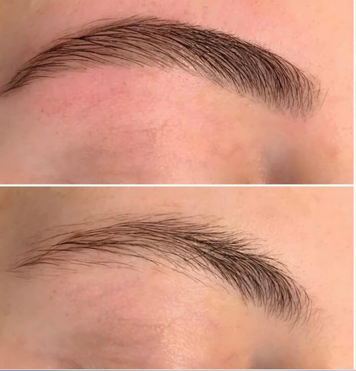 Using a machine to shade or ``powder`` in the eyebrows as you would if filling it in with powdered makeup and blending the colour gradually lighter as you go towards the nose or head of brow.